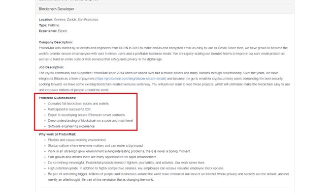 Согласно описанию, компания ищет инженера, обладающего знаниями в области «разработки безопасных смарт-соглашений Ethereum», предполается, что проект, вероятно, будет использовать блокчейн второй по рыночной капитализации криптовалюты.