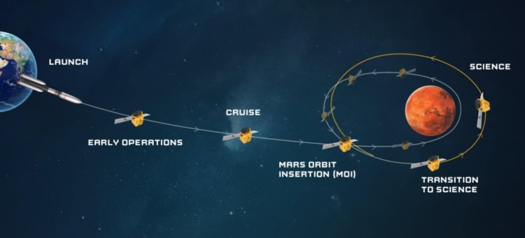 Февраль 2021 года определенно войдет в историю Объединенных Арабских Эмиратов. Вчера ученые успешно доставили к Марсу межпланетную станцию Al Amal, которая является первым подобным аппаратом арабского производства. Вечером, 9 февраля в 19:13 по московскому времени, стало известно об успешном совершении всех необходимых маневров для входа в атмосферу Красной планеты. Станция без проблем сбросила скорость с 121 тысячи до 18 тысяч километров в час и на данный момент спокойно совершает вокруг нее полет. Спустя некоторое время она начнет тестировать встроенное оборудование, после чего приступит к выполнению основных задач. Как минимум, ей нужно изучить состав марсианской атмосферы, а также узнать больше о сезонных изменениях климата. Времени на это выделено предостаточно — ожидается, что станция проработает на орбите Марса два года. Это еще далеко не все, что нужно знать о станции Al Amal. Давайте рассмотрим еще несколько интересных фактов.
