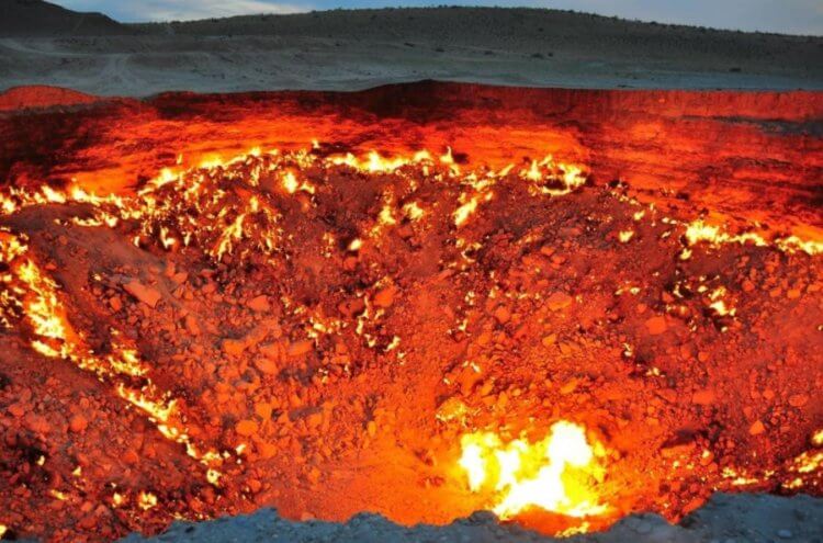 В 1971 году, неподалеку от деревни Дарваза в Туркмении, ученые нашли скопление природного газа. В ходе изучения территории буровая вышка и все остальное оборудование провалились в яму, которая была скрыта снизу. Возникла опасность того, что опасные газы начнут выходить на поверхность и исследователи решили их сжечь. По их мнению, пламя должно было потухнуть через несколько дней. Но газов оказалось настолько много, что они горят до сих пор. Кратер Дарваза также известен как «врата в ад».