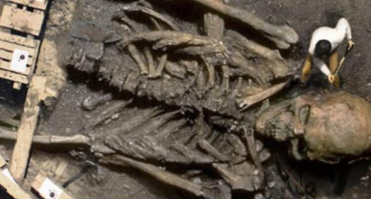 Фотография, где археолог якобы раскапывает скелет древнего гиганта