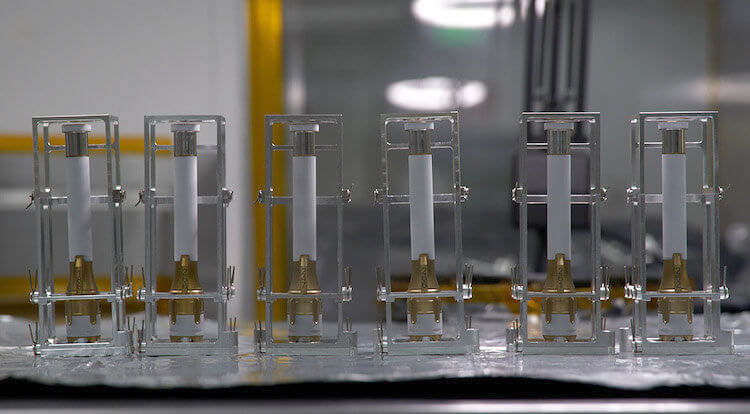 Затем мы берем эту сверхчистую пробоотборную трубку пассивной системы и помещаем ее за жидкостный механический барьер для частиц. Это специально разработанный барьер, который не позволяет частицам размером более 0,3 микрон попадать в объем, в котором запечатаны пробирки с пробами. Затем, когда они в нем, мы помещаем их в термокамеру на несколько сотен часов и очищаем все внутри этой трубки. В итоге мы получаем стерильные контейнеры в индивидуальной упаковке.