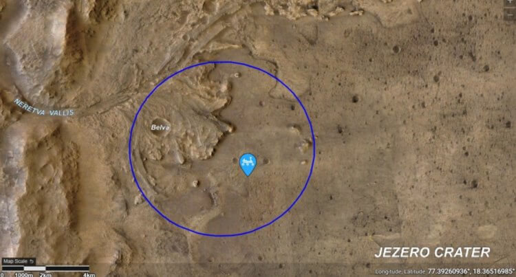 Местоположение марсохода Perseverance