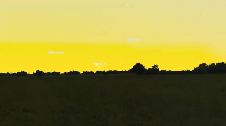 Представление художником того, как будет выглядеть соединение Венеры и Юпитера.
