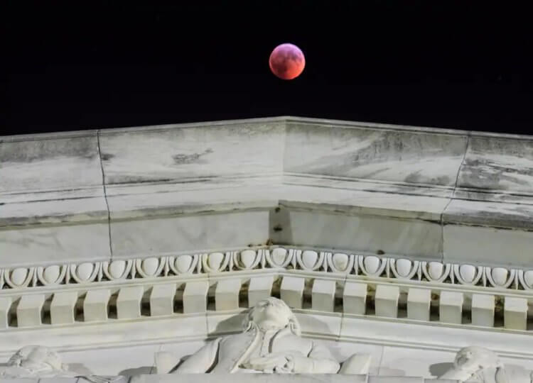 Томас Джефферсон, кажется, наблюдает за лунным затмением 20 января 2019 года. Фотография была сделана со ступенек мемориала Джефферсона, как пишет The Washington Post.