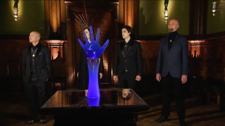 Кадр из «Битвы экстрасенсов» — российского псевдонаучного телешоу канала ТНТ, которое показывает людей, изображающих обладание «сверхспособностями».