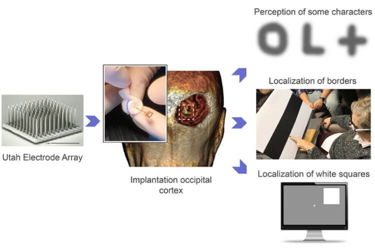 Последний месяц Берна Гомес училась распознавать символы. Когда ученые начали стимулировать зрительную область ее мозга одновременным включением 16 электродов в разном порядке, фосфены складывались в некоторые буквы алфавита вроде «L», «V», «C» и так далее. В конечном итоге женщина научилась даже понимать разницу между большой и маленькой буквой «O».