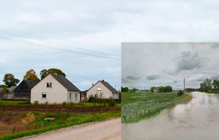 Чтобы убедиться, что сервис действительно поддерживает все, что есть в базах Google Карт, я ткнул в случайное место на карте. Выбор пал на литовскую деревню Вашиленай — визуализация последствий климатический изменений тоже без проблем сработала.
