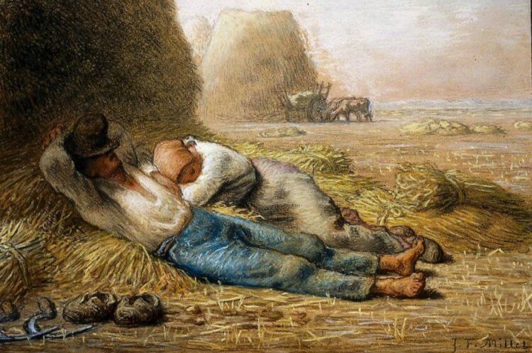 Пяти часов сна людям не хватало, поэтому послеобеденный сон был обычным делом. Обычно он длился недолго, около 2 часов. Но это было даже не прихотью людей, а традицией. Считалось, что без хорошего отдыха о хорошей работе не может быть и речи. Для дневного сна никакой печки не требовалось — люди могли просто прислониться к стогу сена и прекрасно отдохнуть.