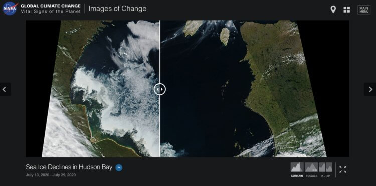 Исчезновение морского льда в Гудзоновом заливе. Фото: NASA