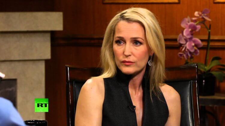Джиллиан Андерсон во время интервью Ларри Кингу. 2016 год.