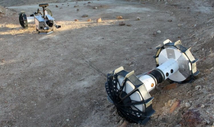Но марсоходами будущего станут не только роботы от Boston Dynamics. Недавно в пустыне Мохаве (США) был испытан прототип аппарата DuAxel, который изначально похож на обычный марсоход с четырьмя колесами. Но при приближении к препятствию, аппарат сможет делиться пополам. Задняя часть останется в роли некого якоря, а передняя сможет двигаться вперед, будучи привязанной к своей половинке при помощи троса. При возникновении проблем, аппарат сможет стянуть трос и собраться воедино.