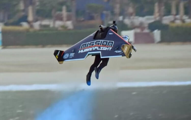 Еще одним известным летчиком-испытателем является Фрэнки Запата. Он является изобретателем летающего скейтборда Flyboard Air, который работает почти по такому же принципу, что и реактивные ранцы. В 2019 году летчик решил использовать этот аппарат, чтобы перебраться из Франции в Великобританию через пролив Ла-Манш. Я рассказывал о его затее в этом материале. Приятного чтения!