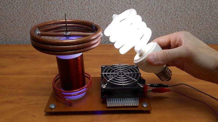Сделанная в домашних условиях катушка Теслы может даже зажигать лампочки рядом с ней.