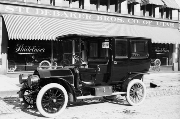 Как и говорилось выше, лимузины начали производиться в начале XX века, на территории США. Страна не была затронута войнами, поэтому именно здесь появился спрос на дорогой и необычный на вид транспорт. После некоторых раздумий, автомеханики решили распилить один из уже существующих автомобилей и удлинить его кузов. Отделив переднюю часть автомобиля от задней при помощи перегородки, они надеялись сделать ее более комфортной для пассажиров. Эксперимент оказался настолько удачным, что создатели первого лимузина не стали его продавать, а начали давать в аренду. На фотографии ниже фигурирует лимузин Studebaker 1908 года производства.