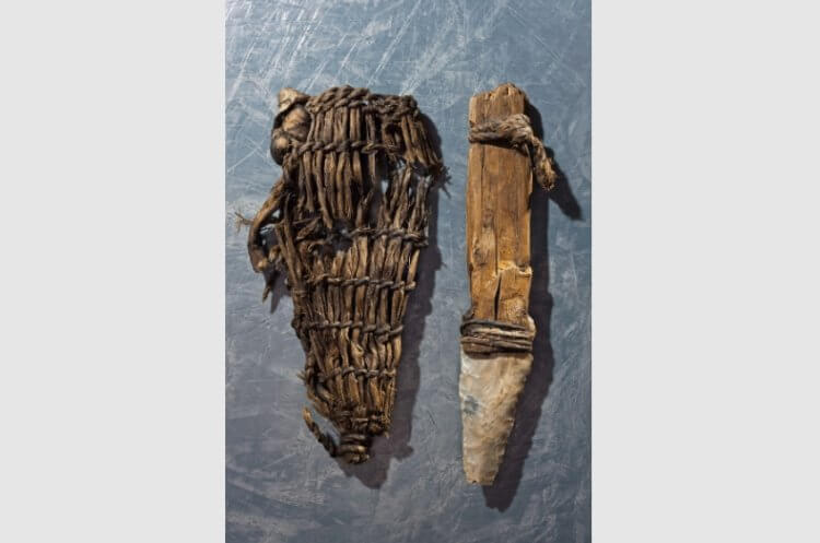 Один из самых важных аксессуаров — медный топор с лезвием в форме трапеции. Лезвие, примотано к тисовой ручке при помощи ремешков из коровьей кожи. Такой топор в те времена был чрезвычайно дорогим предметом.