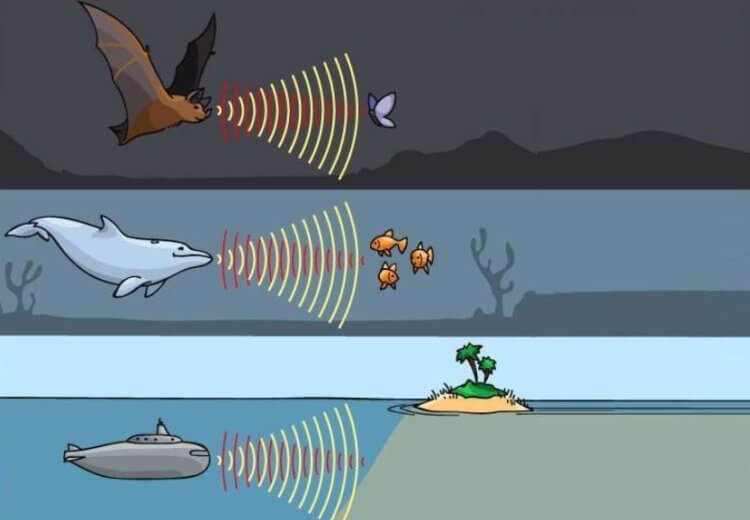 Эта картинка наглядно показывает, как работает эхолокация
