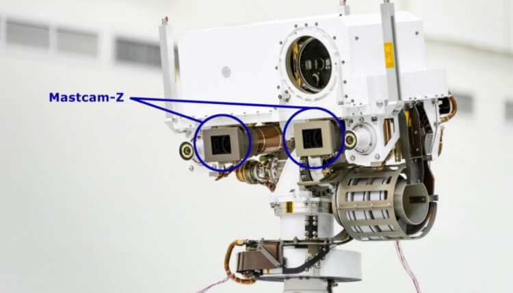 Самые интересные фотографии снимаются на камеры Mastcam-Z. Эта пара камер установлена на специальной мачте ровера, которая может поворачиваться в разные стороны на уровне глаз 2-метрового человека. Поворотная мачта позволяет снимать панорамные фотографии. А наличие сразу двух камер наделяет марсоход неким подобием стереоскопического зрения, как у человека. Также камеры Mastcam-Z интересны тем, что снимают фотографии с разным фокусным расстоянием. Благодаря этому, из множества маленьких кадров сотрудники NASA могут склеивать подробные фотографии. Вблизи марсохода можно разглядеть камни величиной 3–5 миллиметра, а вблизи горизонта — объекты размером 2–3 метра.