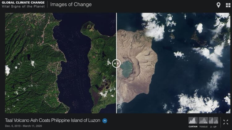 • Пепел вулкана Таал Покрывает Филиппинский остров Лусон. Фотографии сделаны с разницей в четыре месяца.