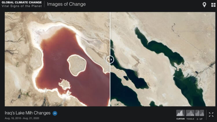 Перед вами озеро Бар эль Милх в Ираке. Разница между снимками составляет два года.