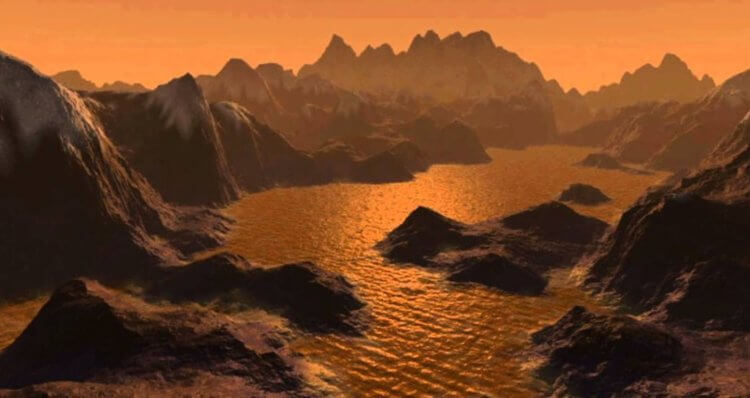 На данный момент метана очень много на поверхности Титана, спутника Сатурна. Так выглядит его поверхность в представлении художника