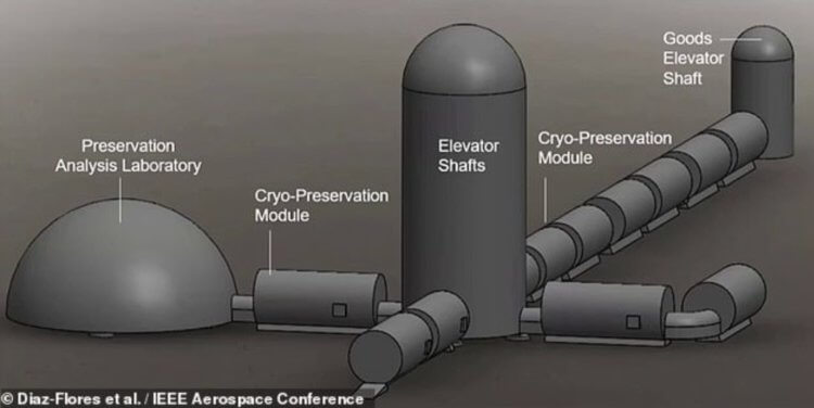 Считается, что склад будет представлять собой комплекс из цилиндрических модулей. Внутри них планируется установить ряды чашек Петри с образцами генетических материалов. Внутри модулей будет очень холодно, потому что для большей сохранности семена нужно охладить до -180 градусов Цельсия, а сперматозоиды и яйцеклетки — до -196 градусов. Для питания холодильника планируется использовать солнечные батареи.