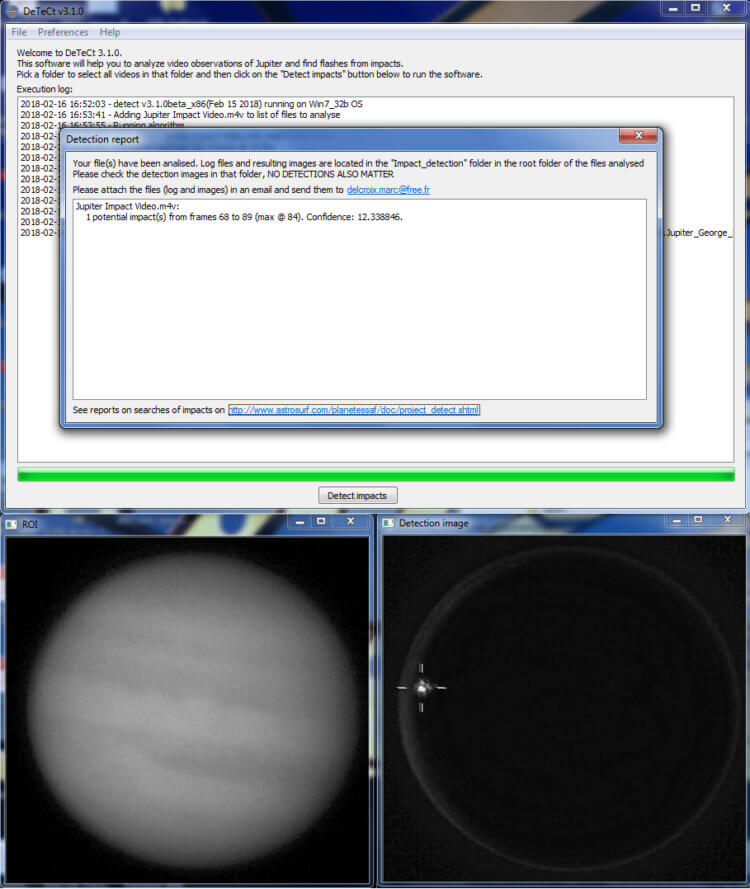 О падении на поверхность Юпитера загадочного объекта было рассказано в издании Sky&Telescope. Вечером 13 сентября астроном-любитель Хосе Луис Перейра (Jose Luis Pereira) установил телескоп в бразильском штате Сан-Паулу. Он давно хотел стать одним из людей, которые фиксируют случаи столкновения космических объектов с разными планетами. Для обнаружения и определения характера столкновений существует программа DeTeCt. Несмотря на плохую погоду, мужчина смог сделать серию из 25 видеороликов и загрузил отснятые материалы в программу. Утром он обнаружил, что наконец-то смог запечатлеть падение объекта на Юпитер.