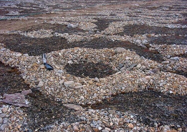 Первая версия гласит, что узоры образуются из-за того, что замерзшие земли время от времени оттаивают. В статье, которая в 2003 году была опубликована в журнале Science, говорится о свойстве регулярно оттаивающих земель образовывать странные, круговые или полосатые рисунки. Тогда это явление было названо «узорчатой землей», а причиной ее возникновения считалась то, что талая вода каким-то образом сортирует камни и другие породы по размерам. Узорчатые земли можно встретить на норвежском острове Шпицберген. Только вот намного меньше по размерам, чем сибирские узоры.