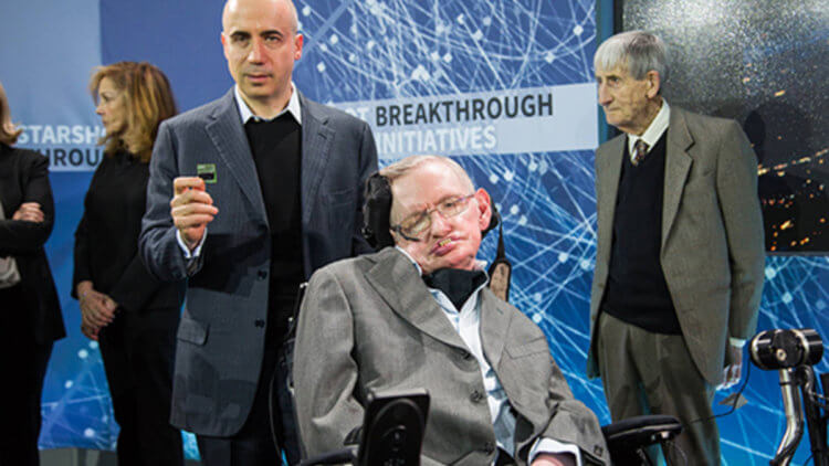 На фото предприниматель Юрий Мильнер и британский физик-теоретик Стивен Хокинг.
