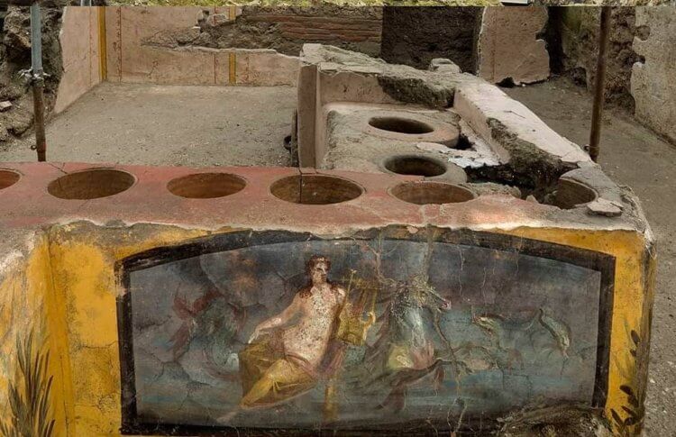 Тысячи лет назад Помпеи считался одним из самых крупных городов Древнего Рима. Но в 79 году нашей эры он, как и многие располагавшиеся рядом поселения, остался под застывшим пеплом извергнувшегося вулкана Везувий. На данный момент территория этого города является музеем под открытым небом, где до сих пор ведутся археологические раскопки. В 2019 году исследователи обнаружили там останки прилавка, который также был похож на какое-то подобие барной стойки. Недавно раскопки на небольшой части Помпеи были завершены. Оказалось, что прилавок является частью полноценной закусочной, в которую древние римляне заходили перекусить. Внутри заведения осталась застывшая фигура владельца и человека, который явно воровал у него еду. Давайте поговорим о находке подробнее и рассмотрим фотографии с исторически важного места.
