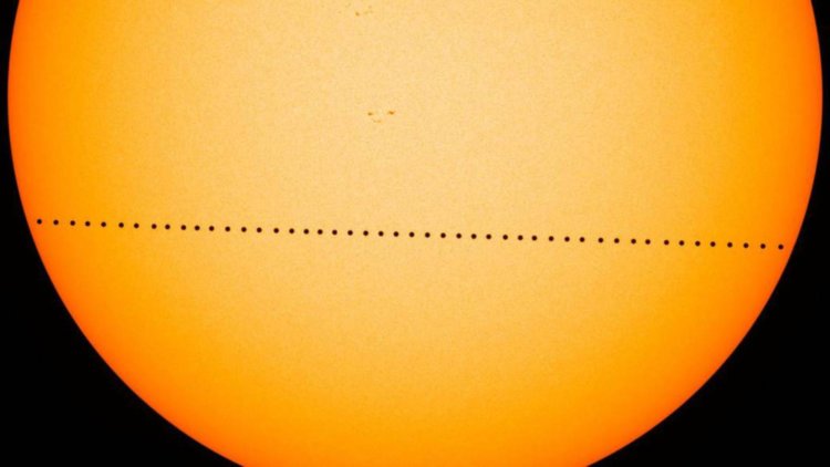 Поскольку Меркурий так мал и так близок к Солнцу, он является самой неуловимой из пяти планет, видимых невооруженным глазом. Наблюдать Меркурий можно только на рассвете и в сумерках, и он обычно не поднимается высоко над горизонтом. Из-за своего положения в Солнечной системе Меркурий проходит между Землей и Солнцем 13 раз в столетие. Это событие называется транзитом и ранее мы подробно о нем рассказывали. Во время этого удивительного события жители Земли могут лицезреть силуэт планеты, когда она, кажется, проносится по диску Солнца.