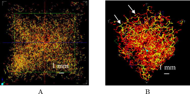 Распределение трещин в новом асфальте (а) и 120-летнем образце (b)