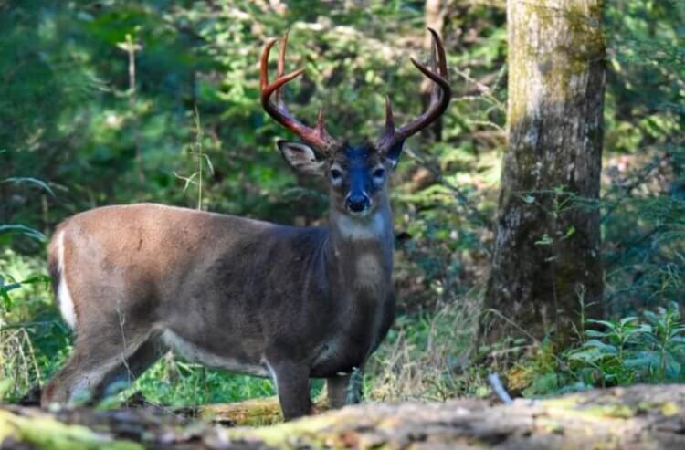 Олень с окровавленными рогами в парке Грейт-Смоки-Маунтинс