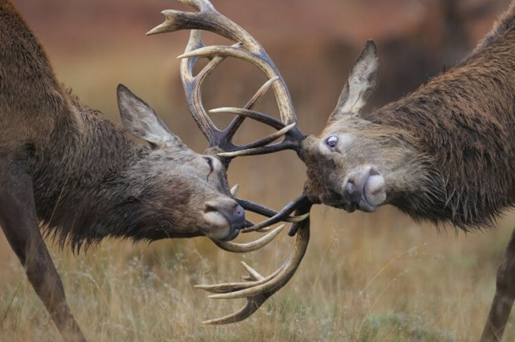 После отбрасывания старых рогов, у оленей начинают расти новые. В период роста они называются пантами и покрыты бархатистой кожей. Этот слой пронизан сосудами и нервами, а его главная задача — обеспечение рогов питательными веществами. В определенный момент олени начинают тереть свои новые рога о деревья, чтобы разорвать покрывающую их ткань. Если этого не сделать, рога не смогут затвердеть, а ведь их прочность напрямую влияет на шансы победить соперников и привлечь внимание самок. Когда кожа рвется, кровь из сосудов начинает течь по рогам оленя, что со стороны выглядит очень страшно. На некоторых фотографиях олени слизывают эту кровь — на самом деле, они просто едят насыщенную питательными веществами кожу. Не пропадать же добру!