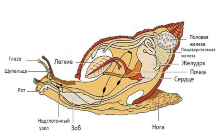 Строение улитки ахатина, которая обычно держится в качестве домашнего животного