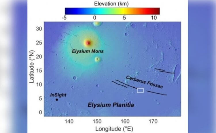 Большинство следов вулканической активности были обнаружены на равнине Элизий. Помимо одноименного вулкана, на этой территории миллионы лет назад извергались купол Гекаты и купол Альбор. Несмотря на долгие годы исследований, регион до сих пор полон загадок и время от времени сильно удивляет исследователей. Во время изучения снимков с орбитальных аппаратов (над Марсом летают несколько), ученые нашли темную область вокруг одной из трещин разлома Cerberus Fossae. По словам исследователей, территория богата пироксеном — веществом преимущественно вулканического происхождения. Примерно такие же образования можно найти возле вулканов Луны и Меркурия, так что сомнений в том, что в какой-то момент времени там произошло извержение, практически нет.