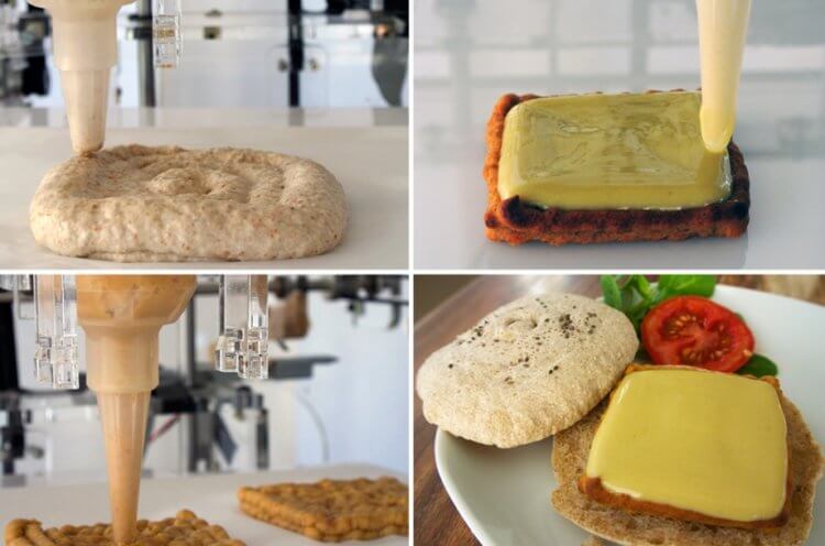 Впервые печать продуктов питания на 3D-принтере была упомянута в 2015 году на страницах научного журнала Procedia Manufacturing. В целом, принцип технологии всем известен — в принтер заливается сырье и из него слой за слоем создаются различные блюда. Только вот в качестве «чернил» всегда используются разные вещества. Например, в 2018 году группа корейских ученых под руководством Ри Чжин-Ку (Jin-Kyu Rhee) взяла на вооружение криогенную муку. Если говорить чуть проще, исследователи подвергли продукты температуре −100 градусов Цельсия и получили микрочастицы, состоящие из углеводов и белков. Путем контроля их соотношения ученые смогли напечатать пригодные к употреблению в пищу структуры.