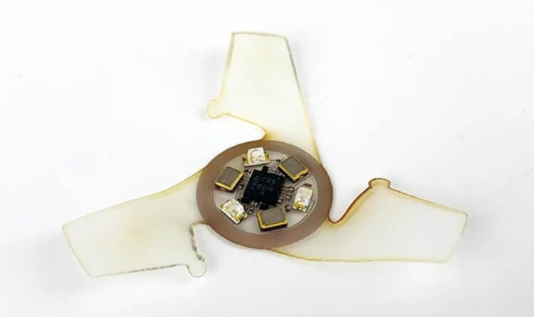 О новом изобретении американских ученых было рассказано в научном издании Science Alert. Свое детище инженеры называют «microflier», что дословно можно перевести как «микроскопический летчик». Суть этого летательного аппарата очень проста — он ловит ветер и вращаясь, медленно падает на землю. При этом он может быть оснащен источником питания и электроникой для сбора и записи различных данных. По словам одного из авторов изобретения Джона Роджерса (John Rogers), такое устройство способно следить за изменениями в окружающей среде и даже за вспышками различных заболеваний. Для получения более точных данных нужно, чтобы датчики как можно дольше оставались в воздухе — созданная конструкция отлично справляется с этой задачей.