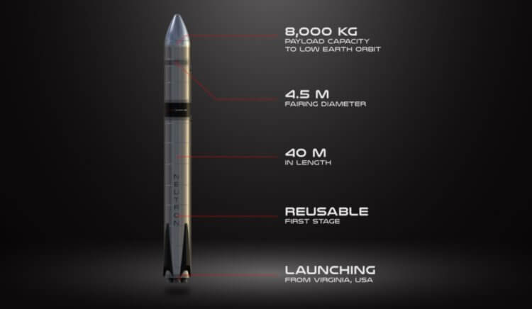 Об особенностях будущей ракеты Neutron было рассказано в издании New Atlas. Высота ракеты составит 40 метров, а ширина обтекателя будет равна 4,5 метрам. Отправляемые на орбиту, Луну и Марс грузы будут помещаться как раз внутрь этого обтекателя. На околоземную орбиту ракета сможет вывозить 8 000 килограммов груза. Грузоподъемность при доставке грузов на Луну составит 2 000 килограмма, а на Марс ракета сможет отправлять только 1 500-килограммовые грузы. Для запуска ракеты планируется использовать американский космодром Уоллопс, который расположен на территории штата Вирджиния. Многоразовая ступень будет приземляться на водную платформу.