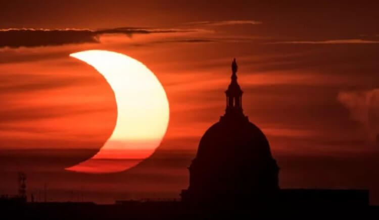 Солнечное затмение над зданием Капитолия (Вашингтон)