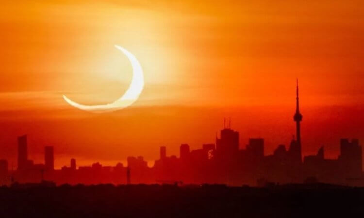 Затмение было снято над канадским городом Торонто фотографом Фрэнком Ганном (Frank Gunn).