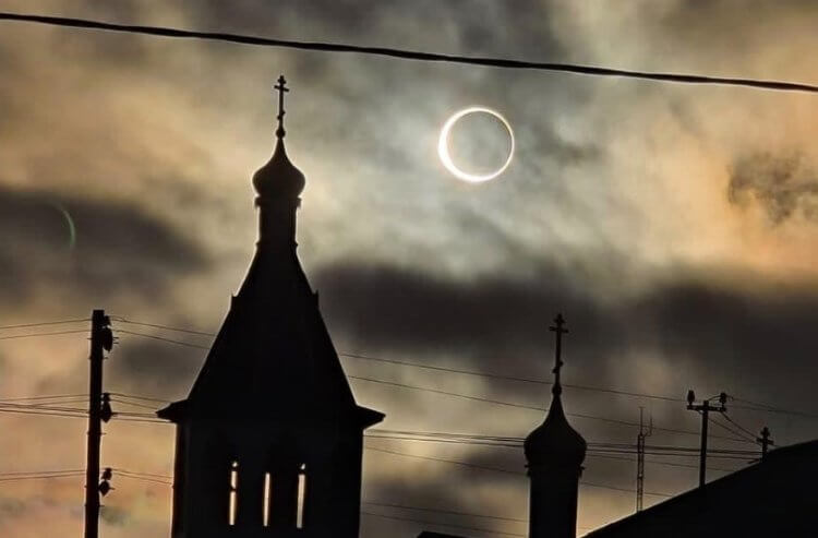 10 июня 2021 года у жителей Земли была возможность увидеть одно из самых редких астрономических явлений — кольцевое солнечное затмение. Оно случается только 14 раз в 100 лет, потому что требует совпадения сразу нескольких факторов. Во-первых, Луна должна располагаться как можно дальше от Земли. Во-вторых, обращенная к нашей планете сторона спутника не должен падать солнечный свет. Ну и в-третьих, Луна и Солнце должны оказаться на одной линии. При соблюдении всех всех этих условий небесное светило выглядит как горящее кольцо. К сожалению, жителям Москвы увидеть это необычное явление не удалось из-за облачной погоды. Но зато насладиться красивым видом смогли жители других стран и они успели сделать много впечатляющих фотографий и даже снять видео. Раз уж многим из нас не удалось лицезреть солнечное затмение, давайте хотя бы посмотрим на фотографии из разных уголков нашей планеты.