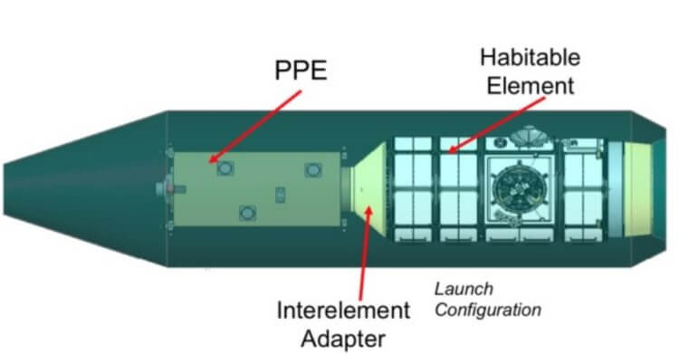 К жилому модулю будет присоединен энерго-двигательный модуль PPE, который оснащен солнечными панелями для выработки энергии. Также у него есть ионные двигатели, которые нужны для изменения местоположения станции относительно Луны. Также в системе есть антенны, необходимые для связи с Землей и летящими к станции аппаратами.