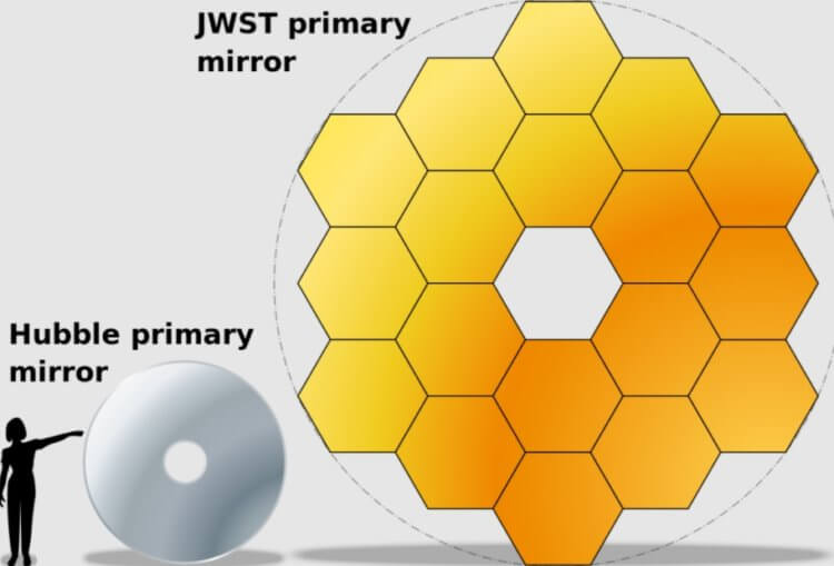 Телескоп Джеймса Уэбба больше и мощнее, чем «Хаббл»