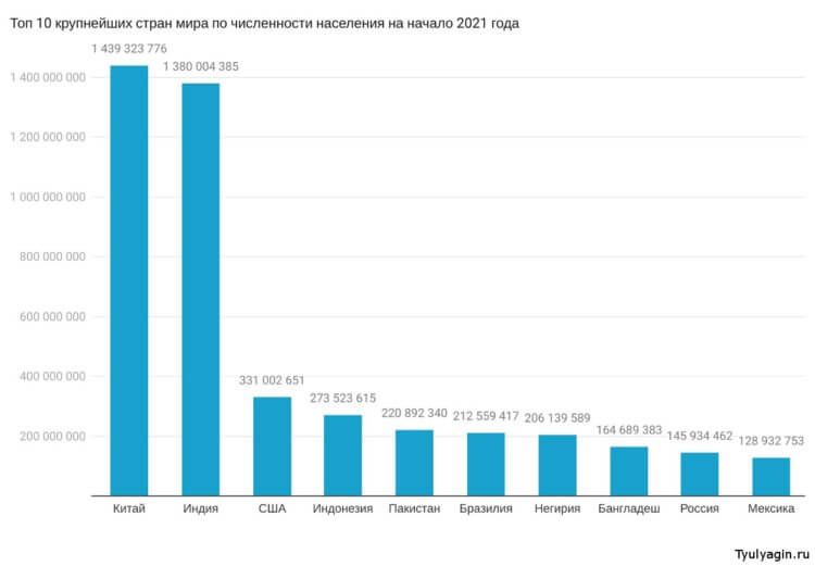 Крупнейшие страны мира по численности населения на 2021 год