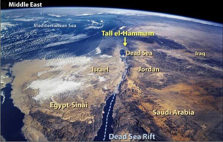 Талль-эль-Хаммам располагался к северу от Мертвого моря