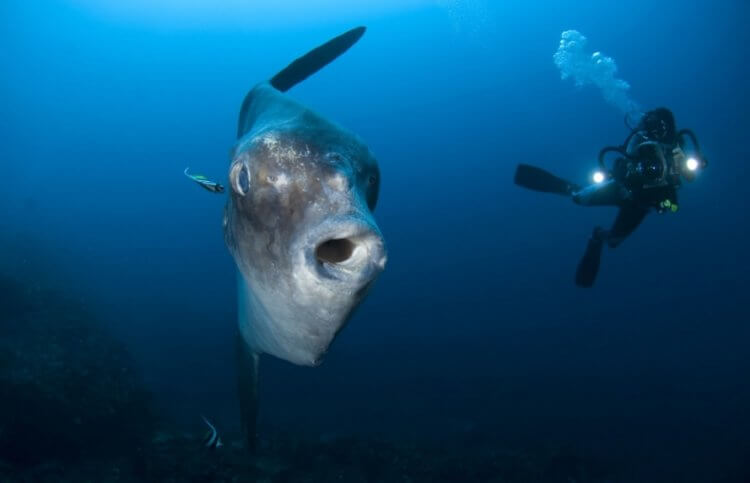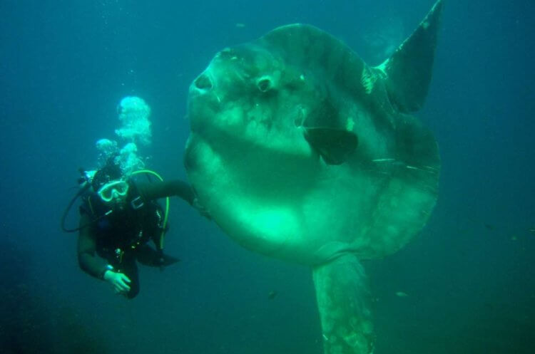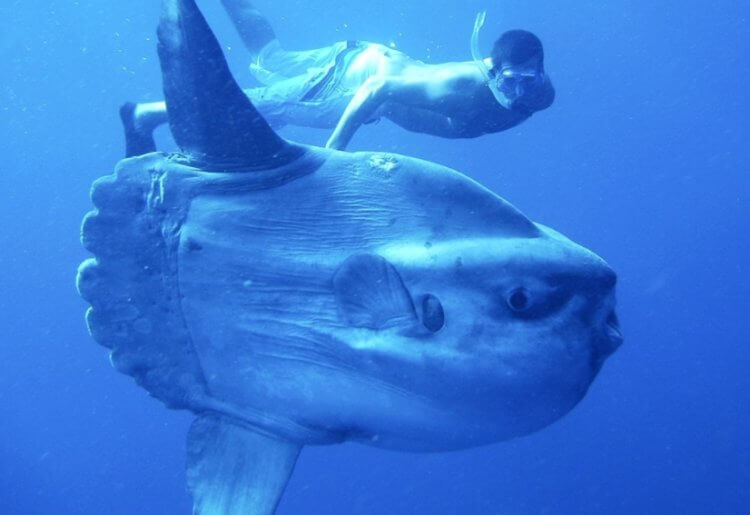 Человек и луна-рыба Mola alexandrini