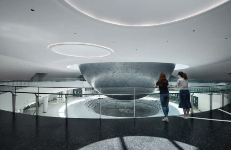 Также комплекс включает в себя выставочную зону, которая разделена на три части: «Дом», «Вселенная» и «Путешествие». Посетители этих помещений могут посмотреть на разного рода метеориты, которые были собраны со всех уголков нашей планеты. О том, куда они чаще всего падают и как их найти, я рассказывал в этом материале. Также на выставочной зоне можно посмотреть на оригинальные документы, которые были написаны знаменитыми учеными вроде Исаака Ньютона, Галилео Галилея и так далее. Также посетители могут увидеть образцы лунного грунта, собранного в рамках космической миссии «Чанъэ-5». О ней я ранее тоже рассказывал, вот ссылка.