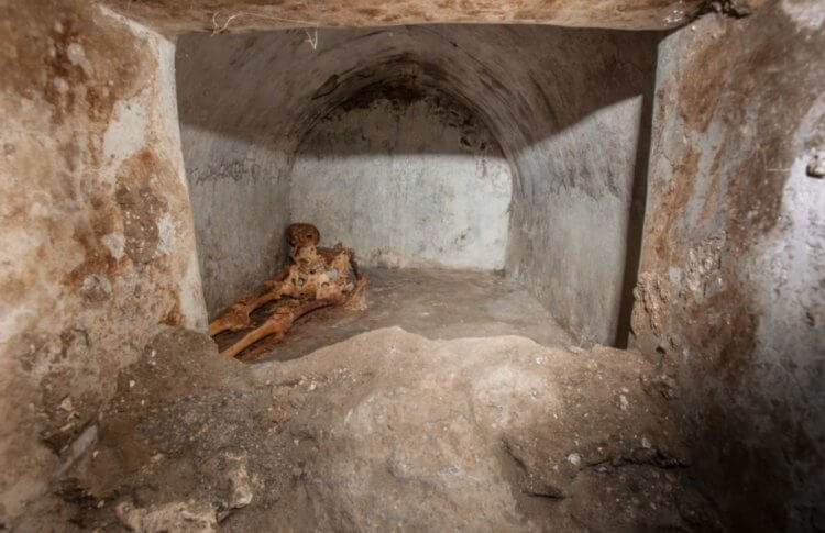 О необычной находке было рассказано в научном издании Live Science. Тело мужчины обнаружилось в комплексе погребений Порта-Сарно, который находится на еще не открытой для туристов восточной части древнего города. Размеры погребальной камеры равны 1,6 х 2,4 метрам, причем она располагается прямо за главным фасадом некрополя. В других частях места погребения находился прах других жителей Помпей. Ученые сочли удивительным, что мужчина был мумифицирован, в то время как тела остальных помпейцев обычно подвергались кремации.