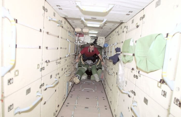 А срок эксплуатации модуля «Заря» уже очень большой. По сути, это самый старый модуль МКС, который находится на службе на протяжении почти 23 года. Длина модуля составляет более 12 000 метров, а масса превышает 20 тонн. В состав конструкции входят две солнечные батареи, шесть аккумуляторов, более 30 небольших двигателей для корректировки положения в космосе и два крупных двигателя для орбитальных полетов. Снаружи модуля закреплены 16 баков, внутрь которых помещается до 6 тонн топлива. При необходимости расширения, модуль «Заря» имеет три стыковочных узла. Как я и говорил выше, на данный момент он используется в качестве склада, поэтому интерьер действительно похож на комнату для хранения вещей.