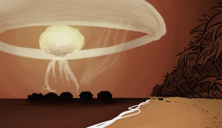 Иллюстрация ядерных испытаний на территории Французской Полинезии